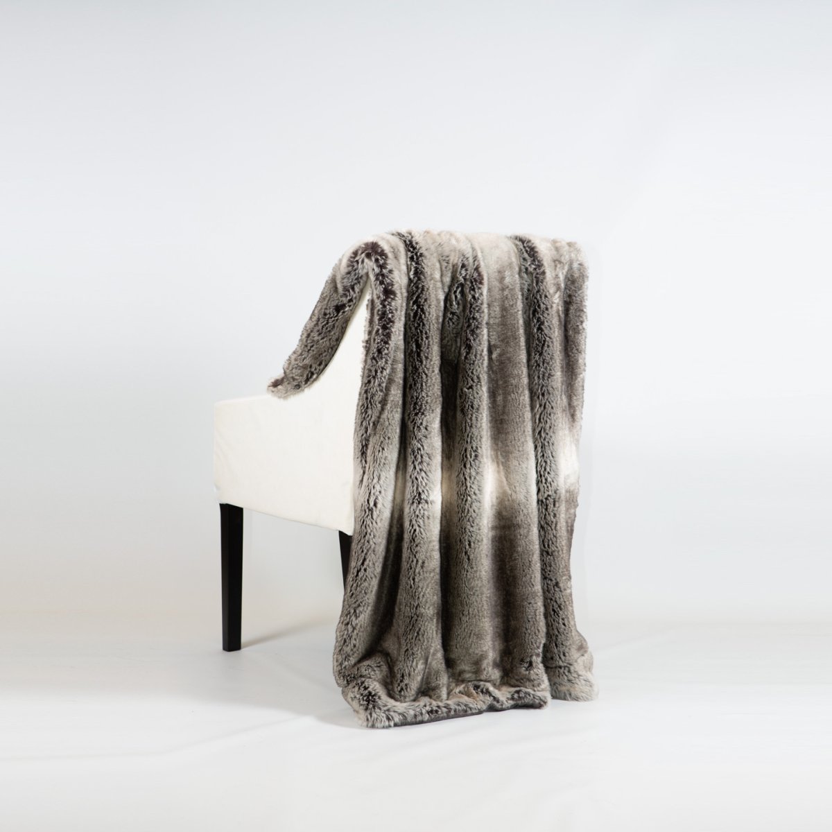 Stilfull och lyxig pläd i fuskpäls – Grå/Vit