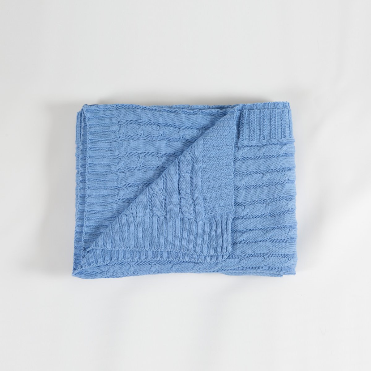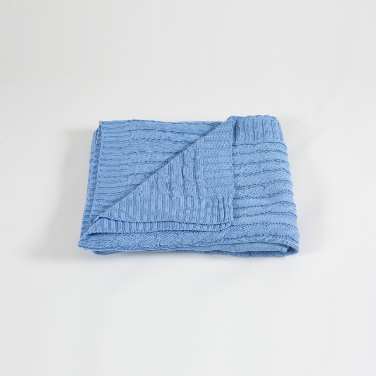 Kabelstickad pläd i blå färg