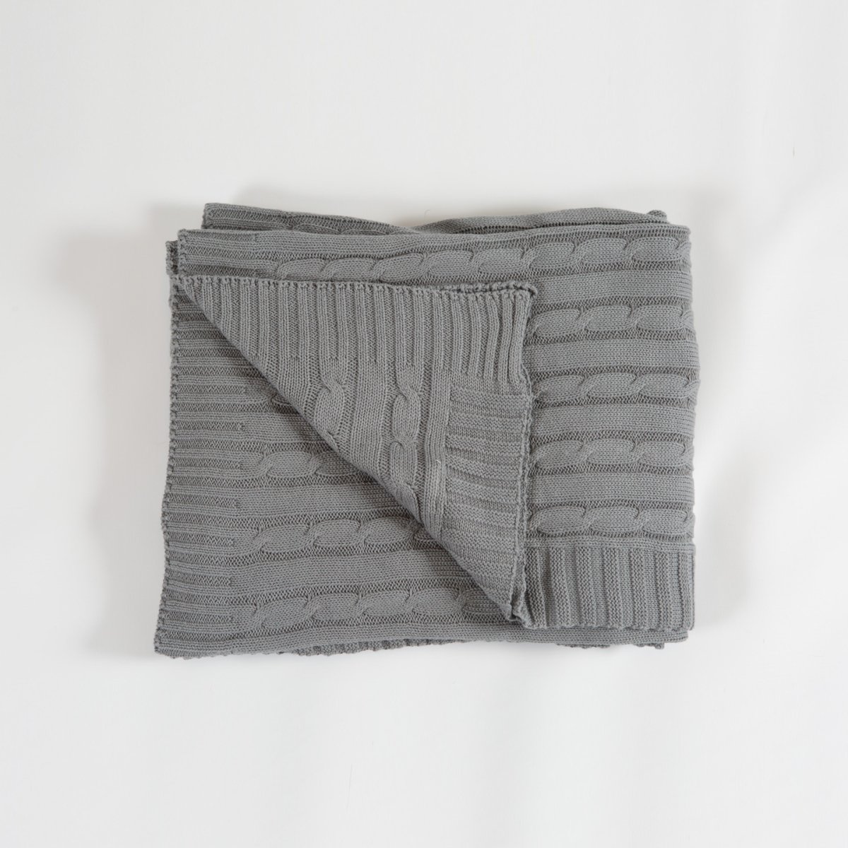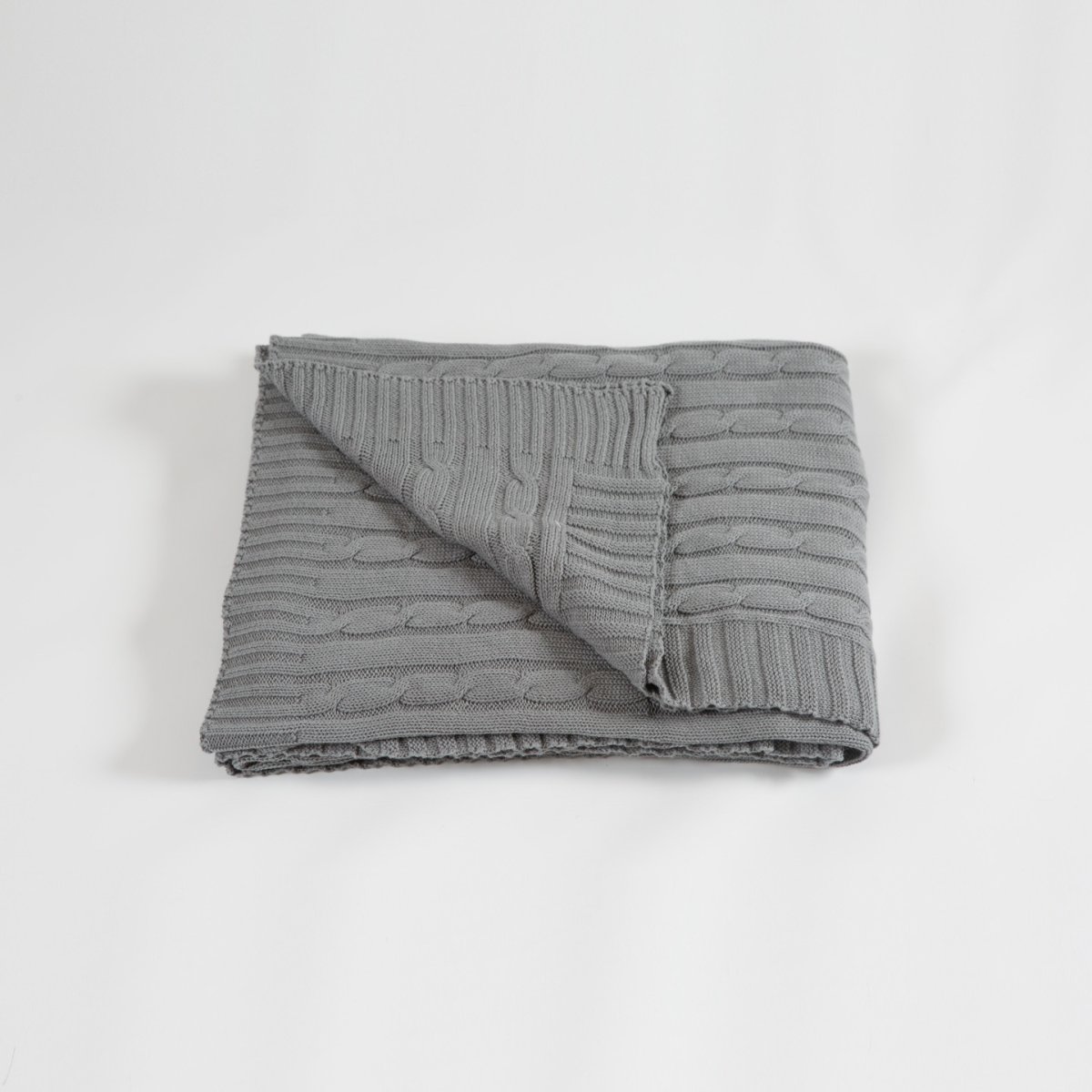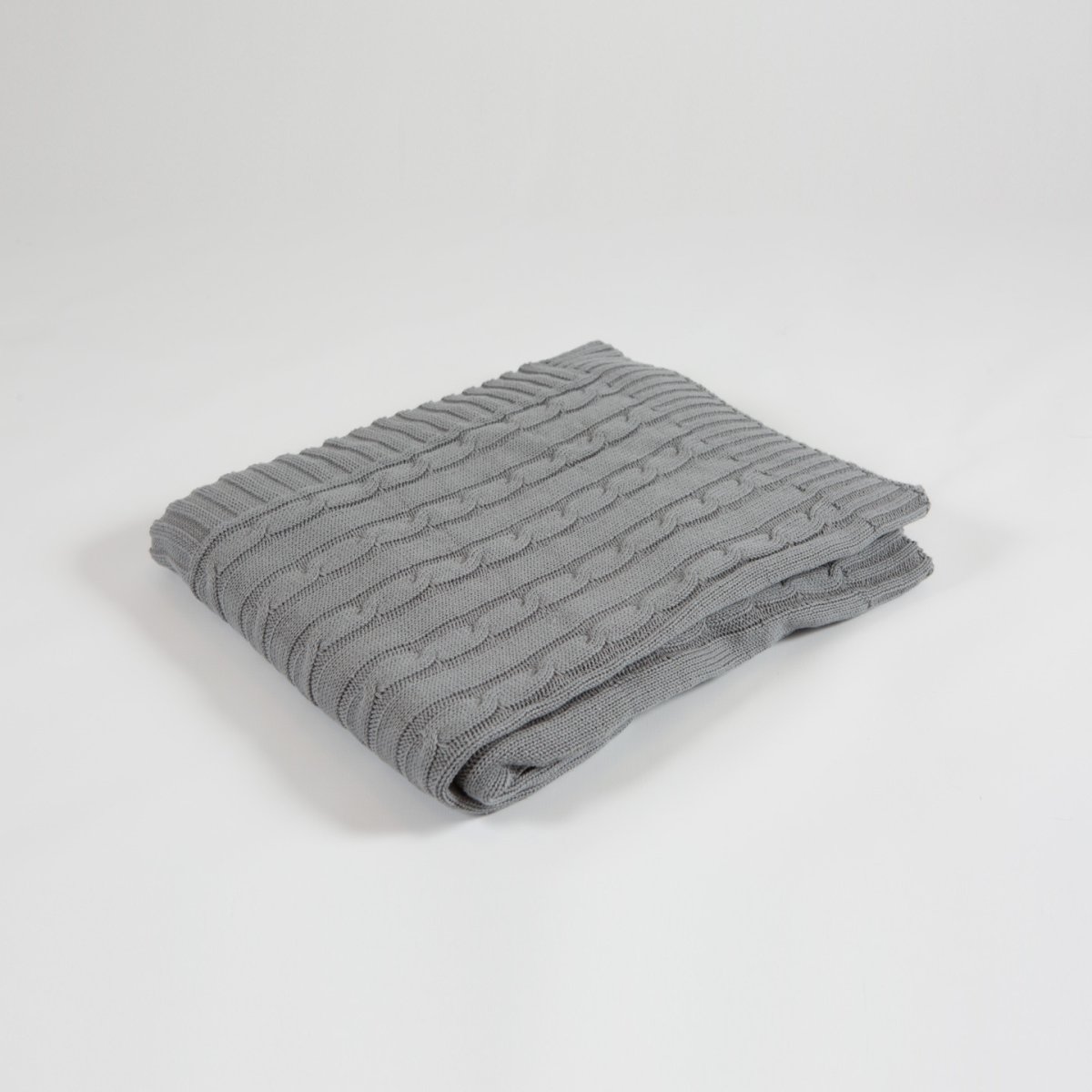 Kabelstickadpläd i grå färg